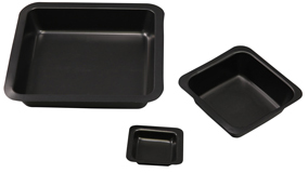 Tyto čtvercové navažovací misky odolávají zředěným kyselinám, alkoholům, ap. Jsou bezpečné, nekontaminují obsah, jsou biologicky inertní. Je to ekonomická varianta pro navažování tekutých nebo práškových materiálů. Mají hladký povrch a zajišťují tak přesné množství navážené látky beze ztrát. To, že jsou antistatické, umožňuje jejich použití i při manipulaci s materiály citlivými na vznik statického náboje.