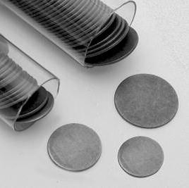 Tyto vysoce kvalitní diskové nosiče vzorků jsou vyrobeny z magnetické nerezové oceli (slitina 430). Mají hladké hrany a dokonale rovný povrch. Nominální tloušťka disku je 0,90 mm ± 0,08 mm. Dodávají se vyčištěné, aby byly zbaveny oxidové vrstvy.