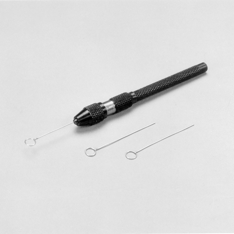 Slouží např. pro zachycení a přenos řezů z mikrotomové lázně. Platinová smyčka je držena ve šroubovacím držáku. Smyčky se snadno čistí žíháním..