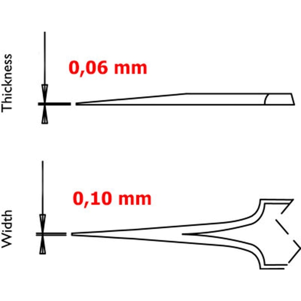 | Rovné a extra jemné hroty | 0.10 | 0.06 | 110mm | Stainless Steel |
