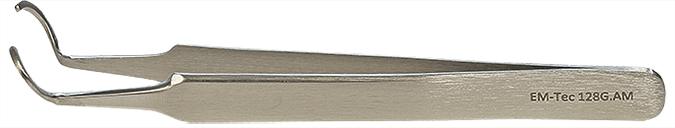 EM-Tec 128G.AM SEM pin stub gripper tweezers for Ø12.7mm pin stubs, anti-magnetic stainless steel, 60 degrees angle