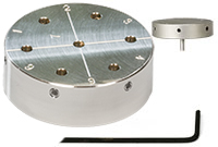 EM-Tec P6 multi pin stub holder dovoluje současnou montáž 7ks nosičů preparátu typu pin-stub o průměru 12,7mm. Vnější rozměry držáku: ᴓ43x10,5mm. Nosiče pin stub jsou v držáku fixovány imbusovými šrouby M3 z nerezové oceli. Imbusový klíč je součástí dodávky.