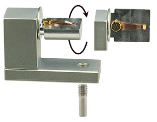 EM-Tec PH91 S-Clip 90° Quick-Flip SEM sample holder kit se skládá ze sestavy EM-Tec PH90 360°/90° - offset holder a z držáku 90° holder with single S-Clip (#12-002911). Tato sestava je určena pro použití s křemíkovými čipy a umožňuje rychlý přechod mezi horizontálním a vertikálním zobrazením hran nebo stran vzorku.