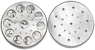 Tuhý, kruhový a stabilní přípravek pro přípravu vzorků. Je vhodný pro všechni typy a veliksti nosičů typu "pin stub" a pro nosiče Hitachi ᴓ15mm. Udržuje příslušné druhy stubů naplocho v očíslovaných pozicích a tím zabraňuje záměnám při přípravě několika vzorků najednou. Maximální kapacita je: 11x nosič "pin stub" Ø12,5mm, nebo 11x Hitachi stub ᴓ15mm. Cetrální otvor lze použít pro pin stub většího průměru (i přes 25mm). Vyrábí se z hliníku o kvalitě vhodné do čistých prostor.