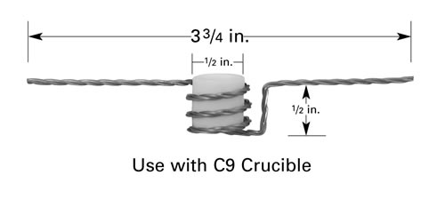 Heating basket B8B for crucible C9, 5.15 Volts, 57 Amps, 294 Watts, 1800⁰ C Temp, 3 x tungsten strand Ø0.76mm, 5 ks/bal