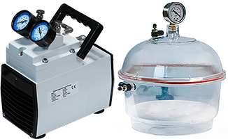 Set PD250 polycarbonate desiccator ᴓ250mm + MP850SC membránová pumpa 230V/50Hz + spojovací hadice
